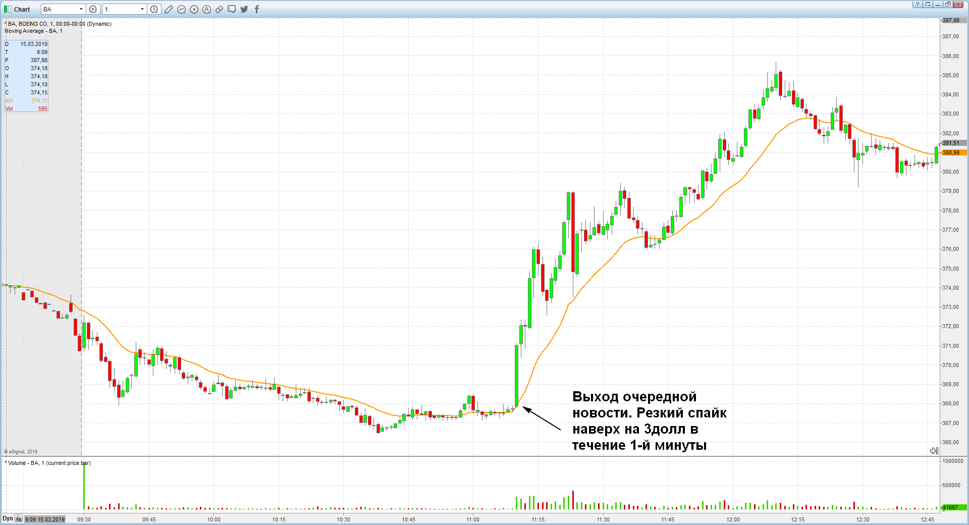 Никто не застрахован от новостей на рынке. Особенно, при торговле горячих стаков, таких как BA.